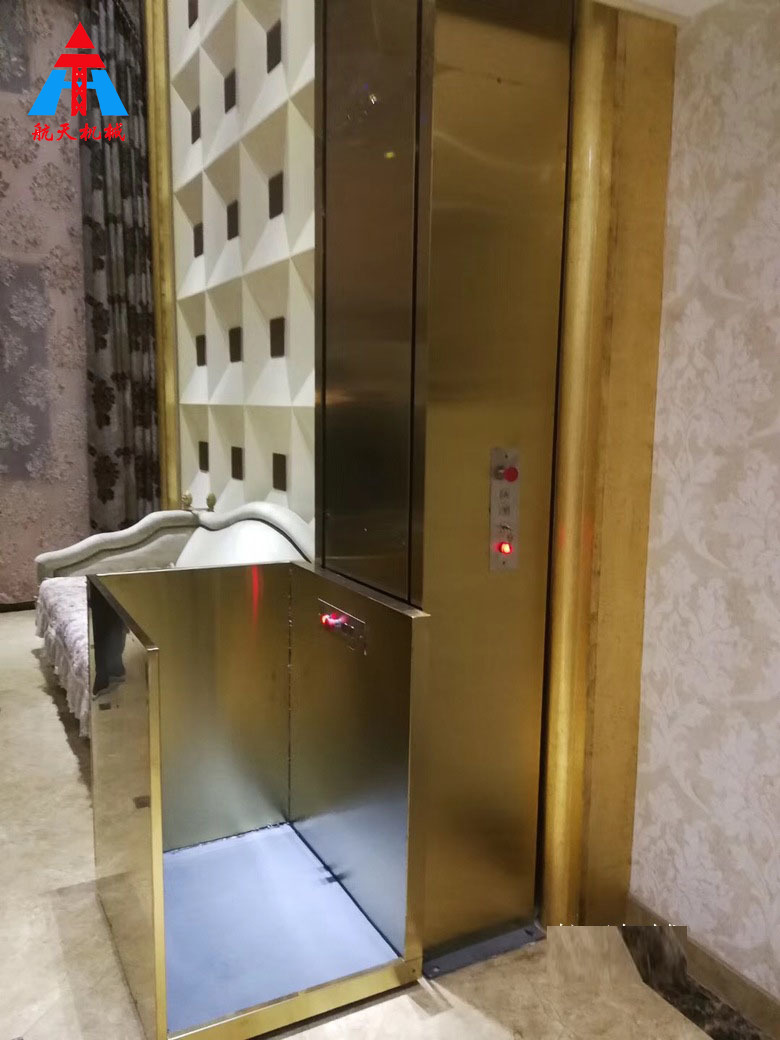 曳引家用電梯或別墅電梯:井道及地坑、轎廂、層站部分;主要部件:曳引系統、導向系統、門系統、轎廂、重量平衡系統、電器控制系統、安全保護系統,電氣方面的安全保護在電梯的各個運行環節都有,這種電梯同小區電梯相同。安靜平穩、價格經濟、乘坐舒適,方便殘疾人和老年人使用的家居電梯。