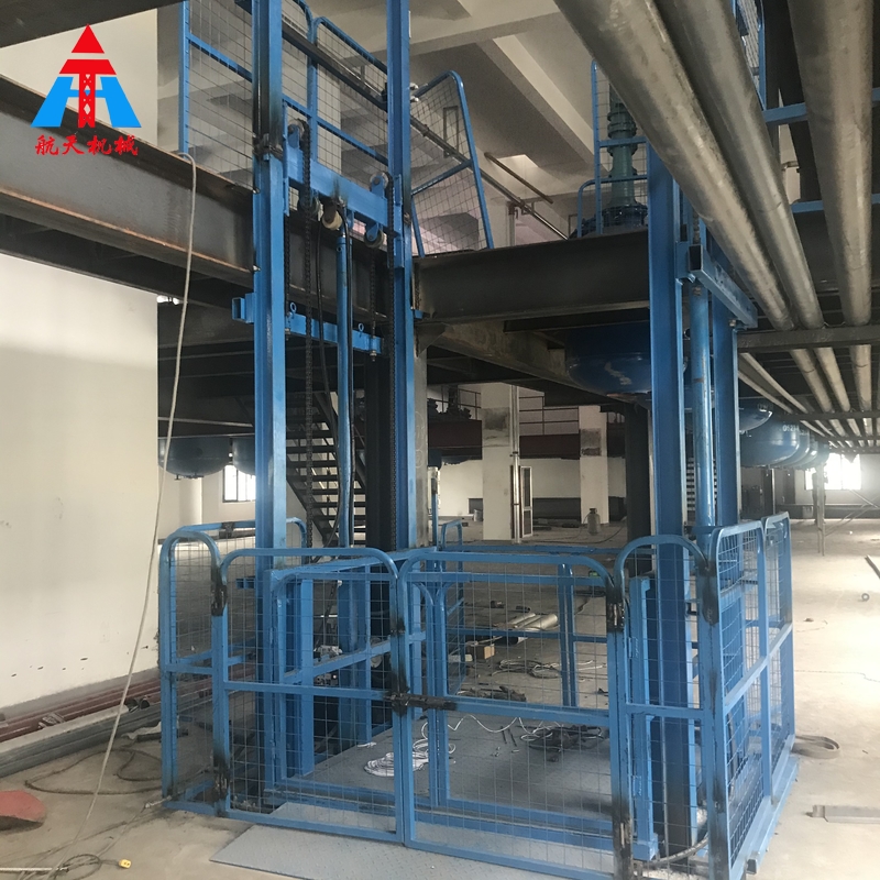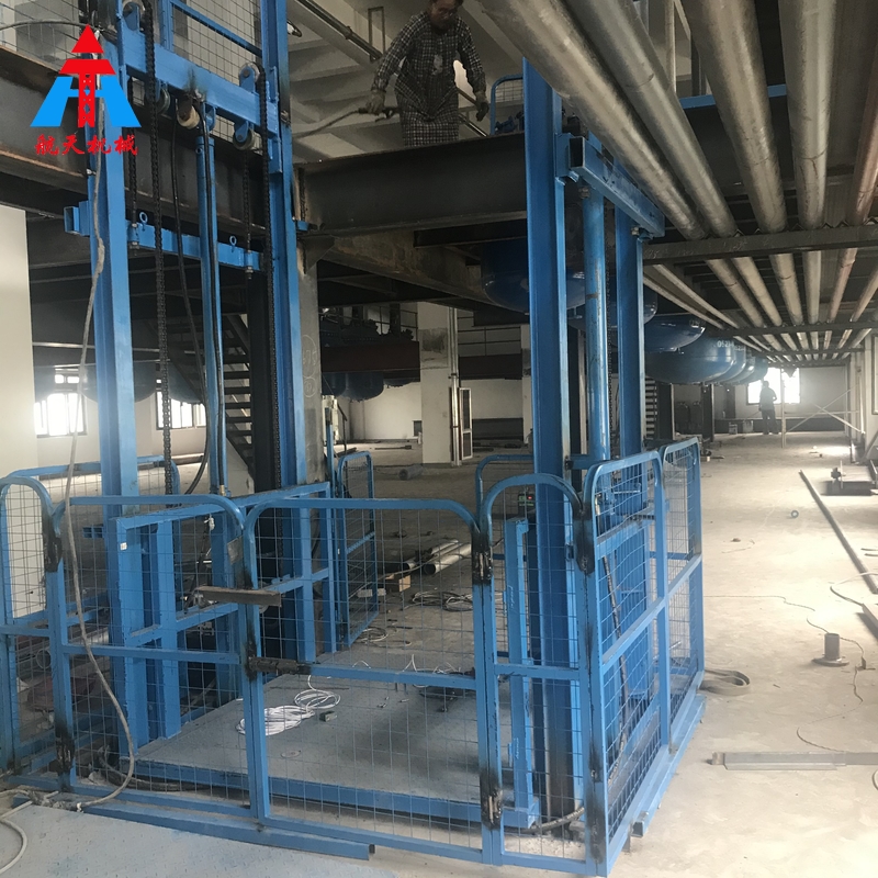【描述】:液壓升降貨梯是用于貨物升降的液壓升降機械設備,釆用液壓站作為主要動力,液壓油缸作為支撐,T型導軌作為軌道,通過特種鏈條和滾輪傳動,保證轎箱運行安全穩定。